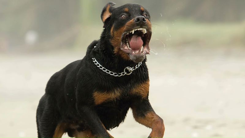 Doi caini rasa rottweiler lasati pe strada in libertate, fara supraveghere.