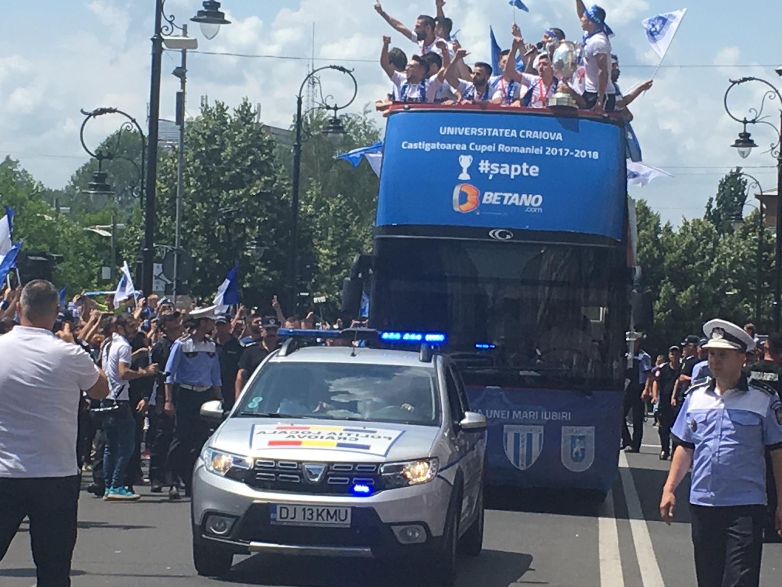 Jucătorii Universității Craiova au prezentat Cupa României în Piața „Mihai Viteazul”